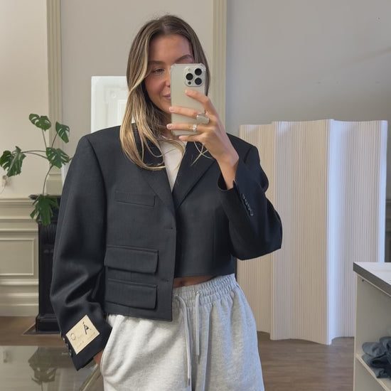 Recreated asymmetric cropped blazer made from high quality vintage blazer