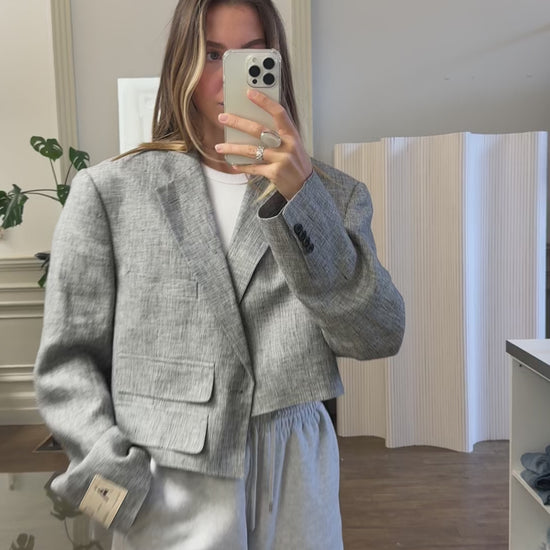 Recreated asymmetric cropped blazer made from high quality vintage blazer