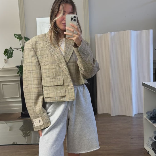 Recreated asymmetric cropped blazer made from high quality vintage blazer