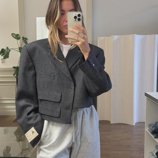 Recreated asymmetric cropped blazer made from high quality vintage blazer
