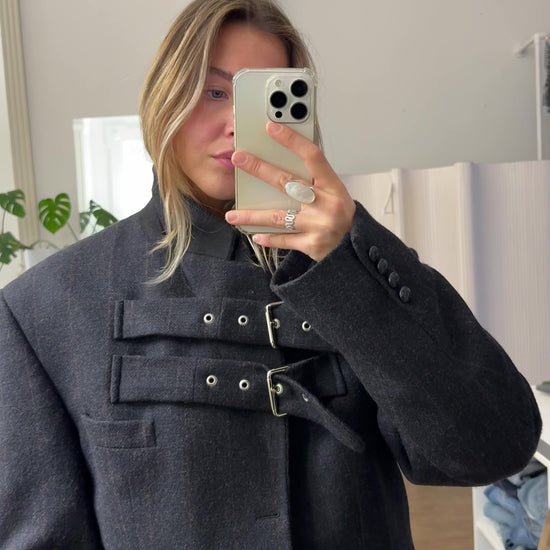 Recreated blazer jacket with adjustable straps made from high quality vintage blazer (jacket is suitable for outdoor)